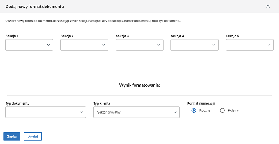 - w Typ klienta wybrać, czy będzie dotyczył tylko faktur wysyłanych do Sektor prywatny, Sektor publiczny czy Oba;